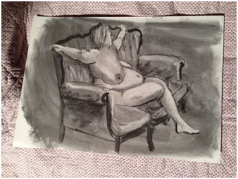 In those moments I realised that Esther had become little more than a bowl a fruit, a beautiful bowl of fruit, but a bowl of fruit nonetheless. As more people volunteered to model I then realised that the beauty of life modelling is that everyone completely forgets that there is a naked person in the room. The new model is consumed with thoughts of holding the pose, maintaining utter stillness, and the itch on her nose. The artists in the room are consumed with capturing the curve of the spine, the droop of a breast, the length of the femur and those hands and feet. Oh, the dreaded hands and feet.