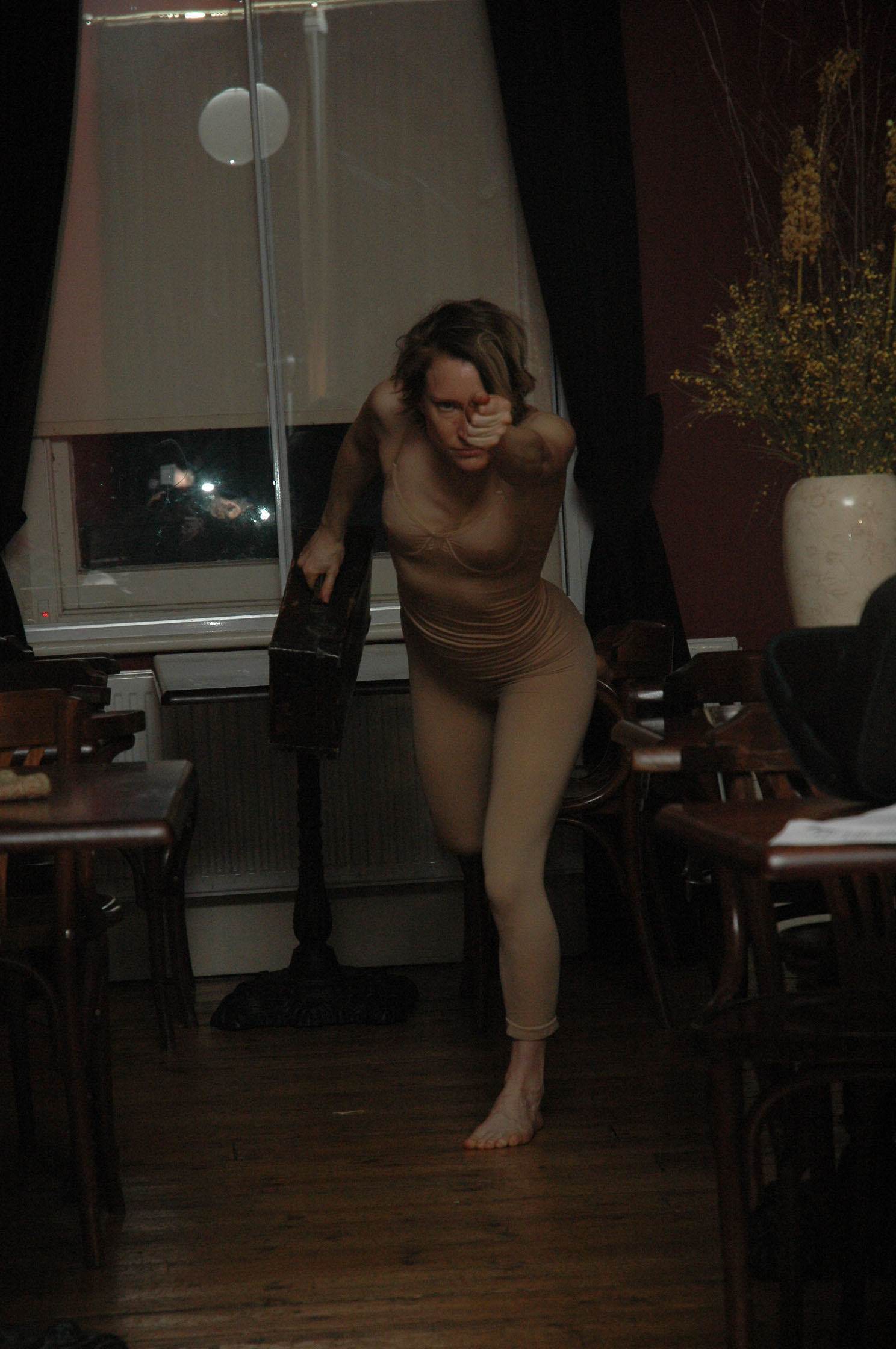 It is a one woman life modelling spectacular. I will be with 4 musicians; a string ensemble as well as a percussionist, and the audience may draw the show if they wish. It is not entirely nude, there are a few flimsy costumes; a skip-raided set, and a soundtrack for the first scene which I created before I had met the musicians. Actually that scene is recycled from previous shows I have put on because I like it so much. The opening suitcase sequence sets the tone for a fucked up inversion of life drawing set-up. The model is immediately on edge, likened to a trafficked slave, and itching to escape. She makes her come-back, reverses roles with the ‘other character’ – a sinister older woman, and starts to take back her power.
